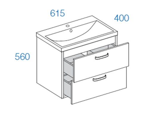 Mitat altaan kanssa korkeus 560, syvyys 400, leveys 615