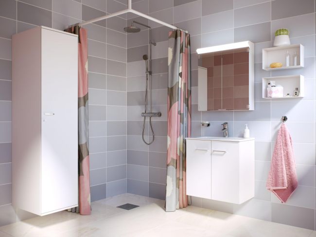 Kaksiovinen, kotimainen ja tyylikäs allaskaappi. Värivaihtoehdot ovat perinteinen valkoinen ja särmikäs harmaa. Stila sopii kaikenkokoisiin kylpyhuoneisiin rivitaloista omakotitaloihin. Ovissa on säätömahdollisuus sivuttaissuunnassa ja kaapissa irrotettava välihylly. Vapaata tilaa putkitusta varten kaapin takana 50 mm. Kaapin mukana toimitetaan poistoputki ja vesilukko pop up -tulpalla. Allaskaapin pohjassa on paikat kalustejaloille. Stila allaskaappi sopii yhteen vastaavan levyisen Stila-altaan kanssa