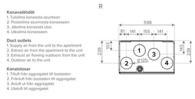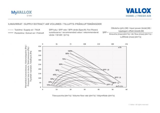 Ominaisuudet- max. poistoilma 51 l/s @ 100 Pa