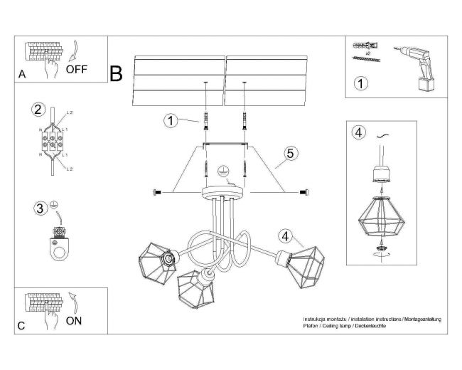 Hehkulamppu: E14, 3x40W, 3x12W LED, 50-60Hz, ~ 220-230V, IP20, laiteluokka I