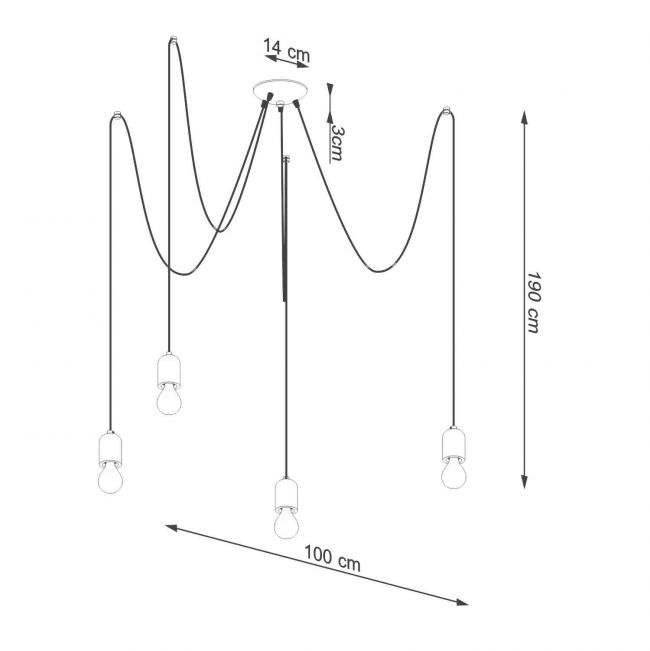 Valonlähde: E27, 5x enintään 15 W LED, 50 Hz, ~230V, IP20, laite luokka I