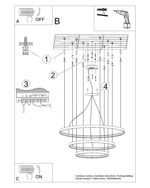 Kattokruunu RIO 3 55/78/110 valkoinen LED 3000K