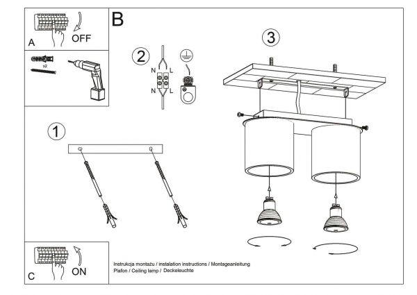 Hehkulamppu: GU10, 2x40W, 2x12W LED, 50-60Hz, ~ 220-230V, IP20, laiteluokka I