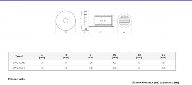 SPK2-sarja sisältää venttiilin, jota voidaan säätää kiristysnyörillä tai säädintä kääntämällä. SPK2-järjestelmässä on sisäänrakennettu äänieristys, joka vähentää melutasoa, ja se on varustettu vakiosuodattimella, joka varmistaa suojan pölyltä ja hyönteisiltä. Elementit on helppo purkaa ja puhdistaa