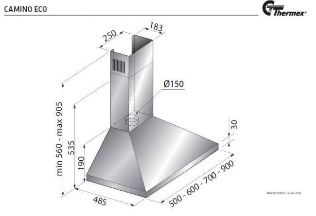 Thermex Camino Eco II on klassinen pyramidimallinen seinälle asennettava liesituuletin.
