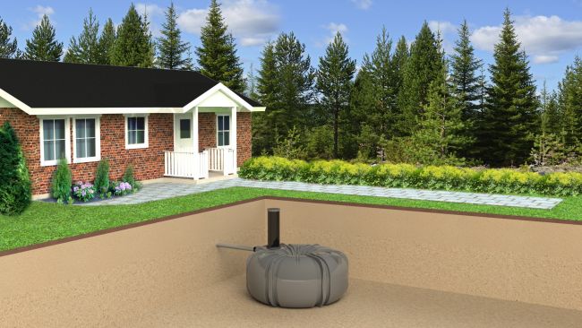 Umpisäiliö 5000 l + Ø 110 mm tuloyhde + 315 mm teleskooppinen huolto / tyhjennysyhde.