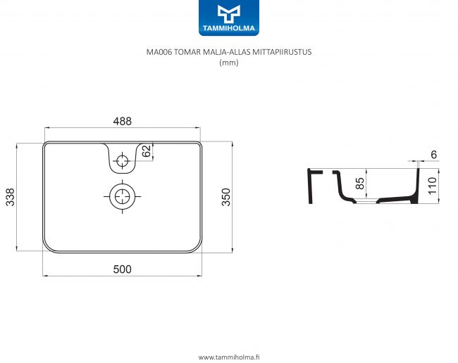 Täysin uuden valmistusmekanismin ansiosta saat wc-tilaasi tai kylpyhuoneeseesi ohutreunaisen posliinialtaan. Tyylikkäässä altaassa on paikka hanalle.