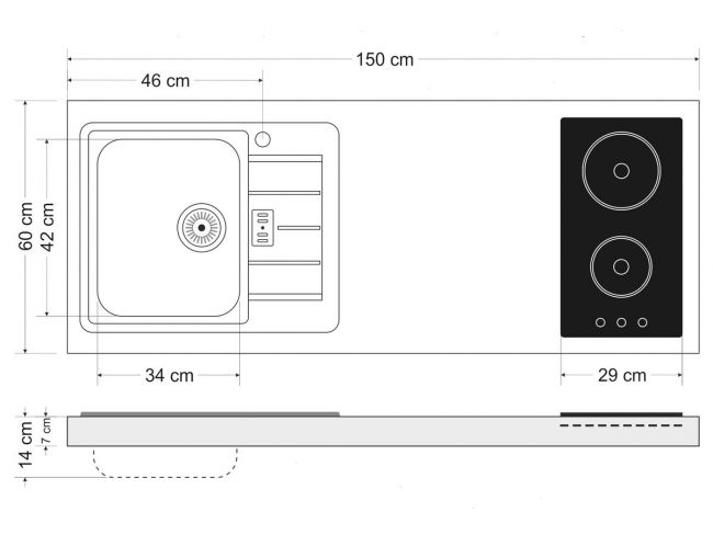 Minikeittiö MPB-150 uunilla ja induktioliedellä