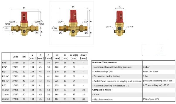 | 4132806 | 27460 | Paineenalennusventtiili 1/2" | 149 mm | 114 | 140 | DN 15 |