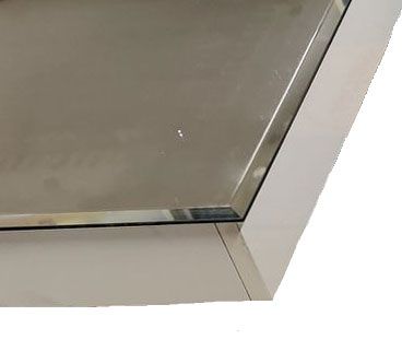 Ominaisuudet: 1 kristallilasinen peiliovi satiinivaloikkunalla, valkoinen runko, viistottu peilin reuna, säädettävät lasiosat, Schuko-pistorasia ja kytkin