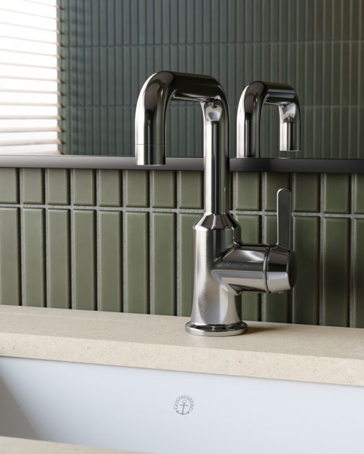 - Luotu Gustavsbergin 200-vuotisjuhlavuotta varten, käsityötaidon ja muotoilun perinteen juhlistamiseksi.Kääntyvä juoksuputki voidaan lukita 0, 60 tai 110 asteen kulmaan tai epäsymmetrisesti