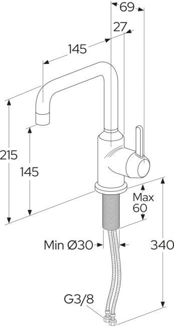 Ennen asennusta putket tulee huuhdella puhtaiksi hanaan asti. Hana liitetään kylmävesiputkeen oikealta ja lämminvesiputkeen vasemmalta. Vedenpaine: max 1000 kPa. Lämpimän veden lämpötila: max 80°C.