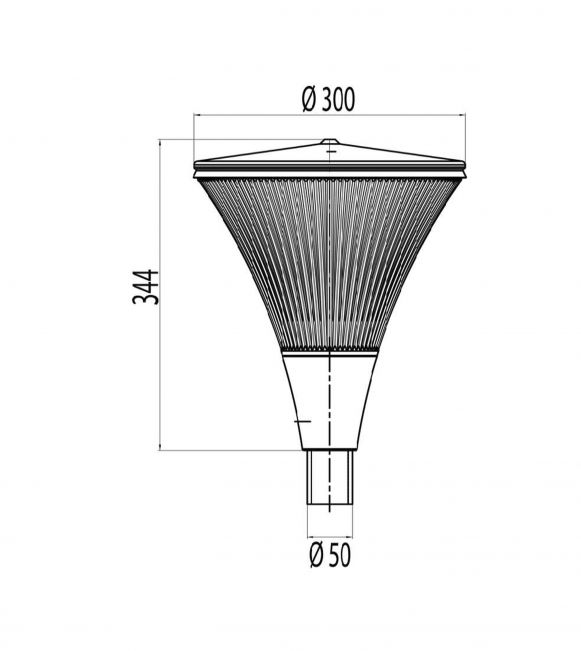 Aaria Pihapiirivalaisin AA01M, E27-kanta max 60W, Optiikka: Pyörähdyssymmetrinen, Ohjattavuus: on/off, SL I, IP44, Ketjutettava 3x2,5mm², Runko: Alumiini (musta), Kupu: Uritettua akryylia