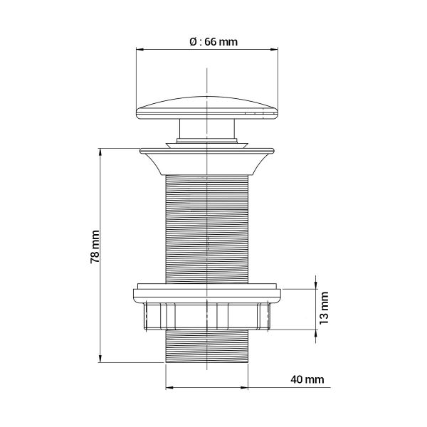 Pohjaventtiili pesualtaalle, jossa ei ole ylivuotosuojaa.
