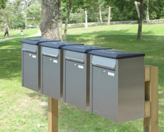 Suomalainen, ruostumattomasta teräksestä valmistettu lukittava postilaatikko. Soveltuu erinomaisesti rivipostilaatikoksi.
