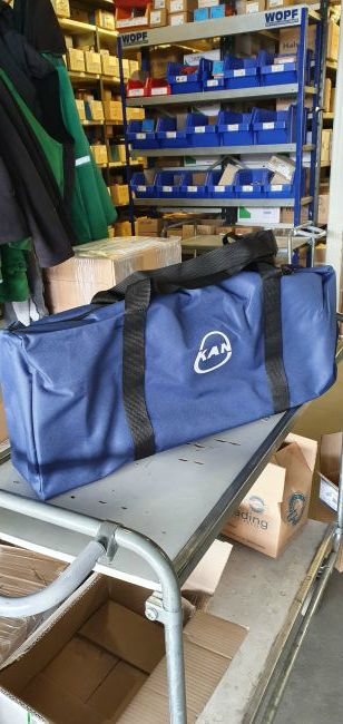 Kevyt putken purkuteline omassa kuljetuskassissa.