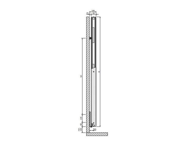 Radiaattori Purmo Vertical VR 21, korkeus 1950 mm