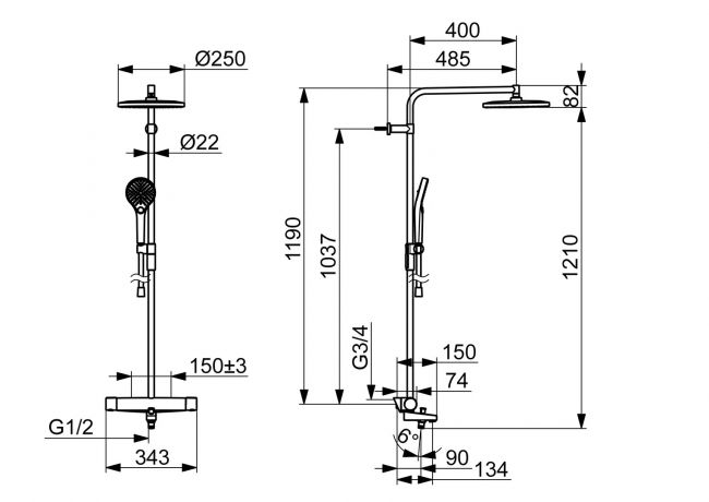 Lämmönsäätökahvassa on lämpötilanrajoitin, joka voidaan ohittaa nappia painamalla. Irrotettava laskutaso suihkutarvikkeille.