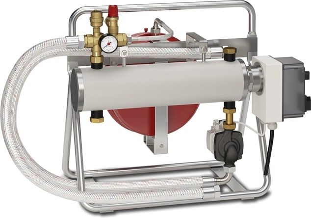 Tämä täydellisesti varustettu sähkökattila on tarkoitettu ensisijaisesti tilapäiseen lämmitykseen, kuten rakennusten lämmitykseen lattialämmityksellä rakennusvaiheessa. Siirrettävän sähkökattilan teho on 9 kW ja se toimii kahdessa 4,5 kW portaassa.