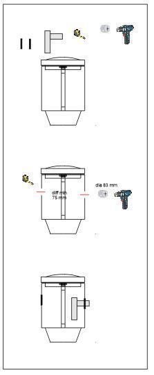 - tuloyhde ⌀75 mm jälkiasennustiiviste, asennuskorkeus pohjasta n.500 mm