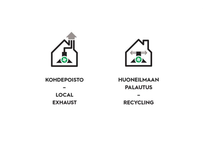 Huom! Käytä aina halkaisijaltaan min. 160 mm poistohormiputkea sisätilaan palauttavissa asennuksissa.