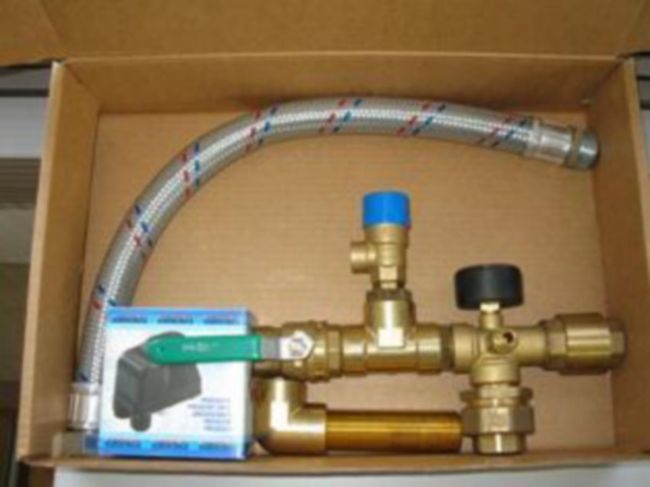 Asennusosa RST ja sekä komposiittisäiliöihin. Paketti sisältää: painekytkin, painemittari 0-10 bar, palloventtiili SK 1", takaiskuventtiili SK 1", varoventtiili 8 bar, messinkiyhde 1 sisäkierre, asennusletku 800mm.